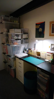 Det er ikke meget der er ændret på de 5 1/2 år jeg har haft mit hobby hjørne. Der er kommet lidt mere på væggen foran mig og mit dyre-hoved opslagstavle er fyldt med ting som jeg holder af og som giver mig inspiration. Jeg har flyttet lidt rundt på ting og sager, men alt i alt så ligner det næsten sig selv.